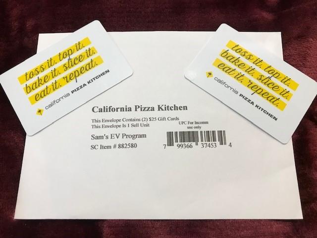 California Pizza Kitchen 50 Value Gift Cards 2 X 25 Sam S Club